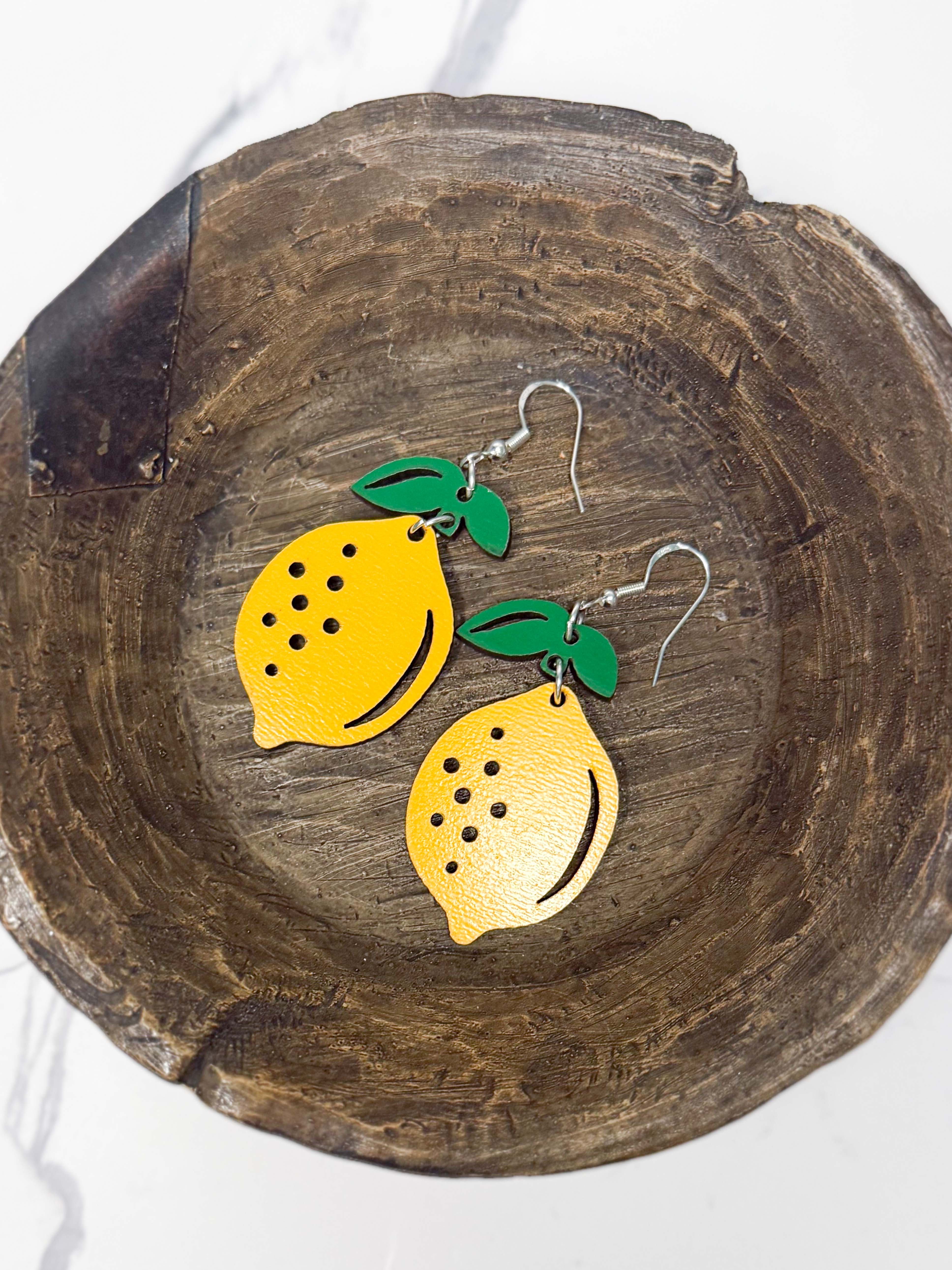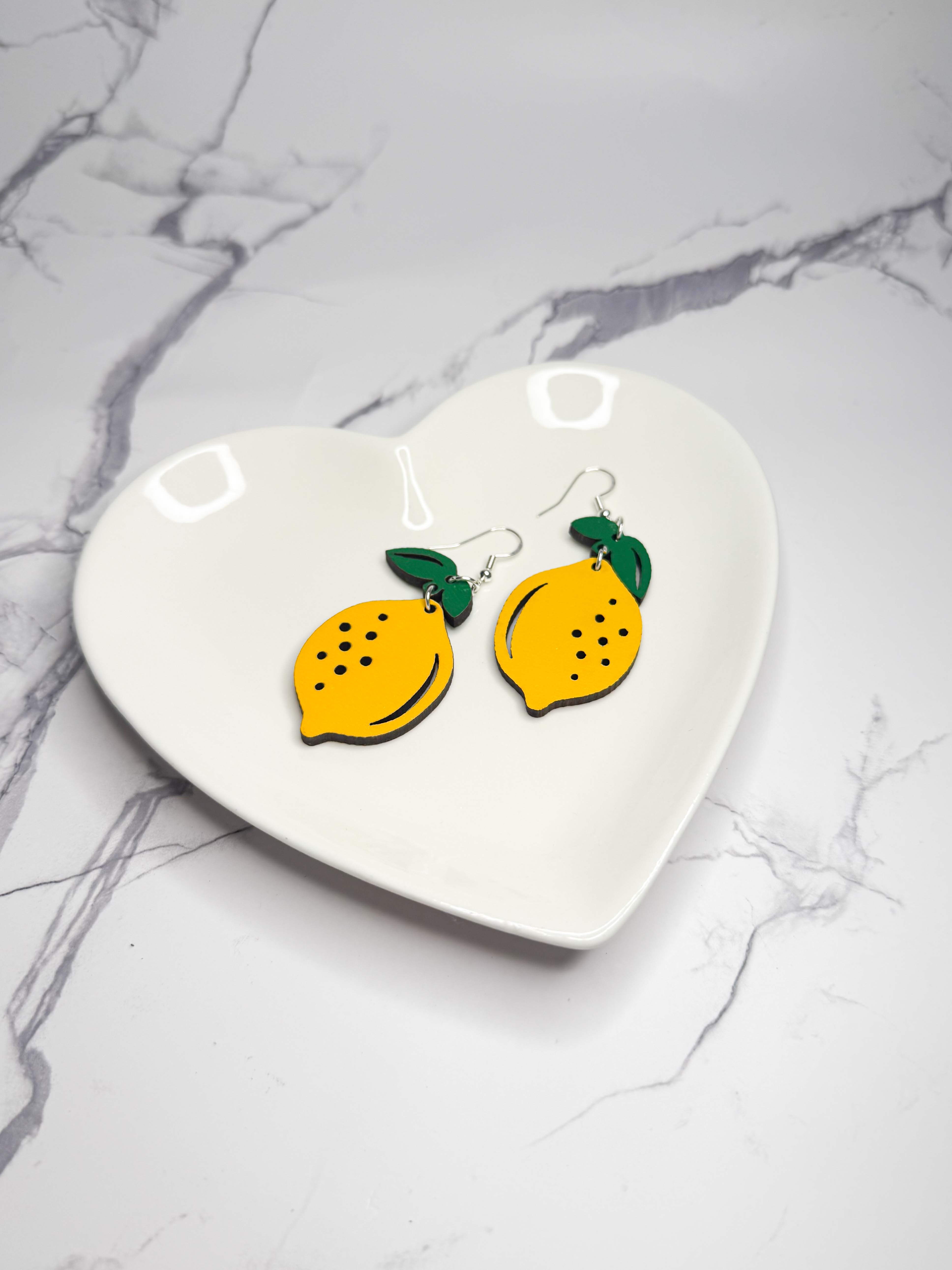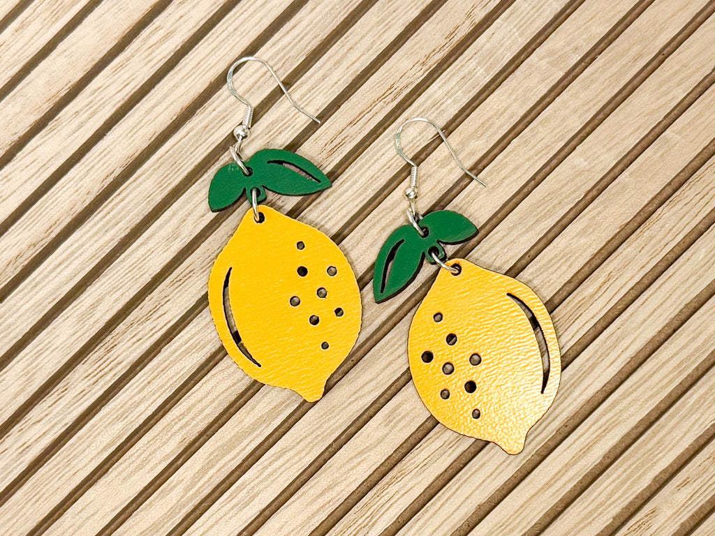 Lemon Dangle Earrings with nickel free hardware designed and cut on our very own laser.