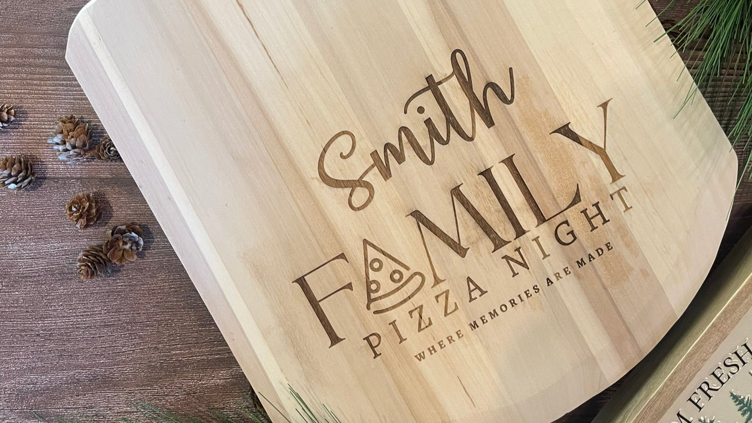 Get ready for the ultimate family pizza night with this personalized pizza peel, crafted from smooth, natural poplar wood and designed for fun, hands-on pizza-making! With a generous 22.25” x 12.13” surface, it’s perfect for pies of all sizes, from mini personals to a pizza big enough to share. The food-safe finish keeps your creations fresh, and the sturdy handle makes sliding pizzas in and out of the oven a breeze—no balancing acts required!